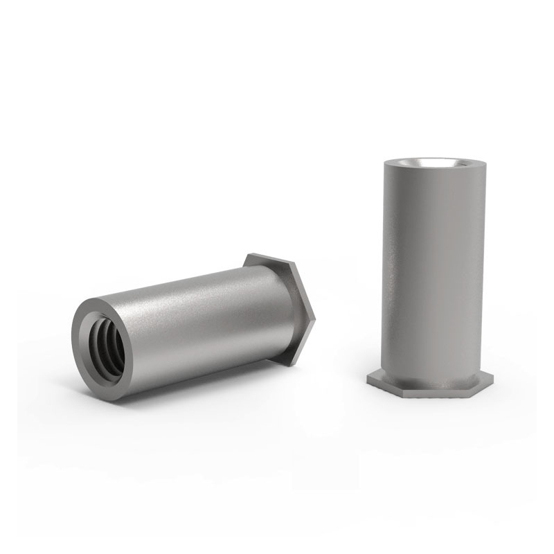 Blind hull flat hexagon nitret mutter er et festet som er egnet for tynne materialer. Den er sterk og holdbar, og tråden er ikke lett å ha på seg. Den har en sekskantform for enkel installasjon, et flatt tellertsunghode som sitter i flukt, og en nøttekropp med et lukket blind hull. Når du installerer den, deformeres mutteren mekanisk (som nagler) for å låse seg på materialet.