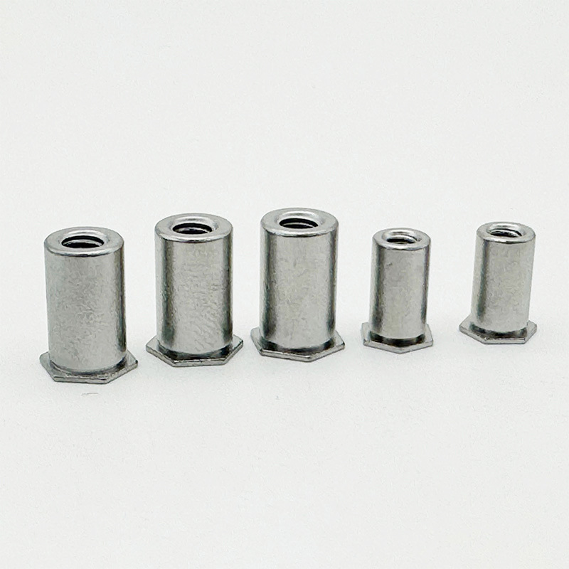 Det blinde hullet flat hexagon nuteted nøtt-rustfritt stål har noen viktige fordeler. For det første, når den er installert, forblir den satt, ingen løsner over tid. Det flate hodet sitter i flukt, så det er ingen bule som stikker ut. Den håndterer vibrasjoner veldig bra, noe som er viktig for deler som beveger seg rundt. Og det er sterkt, holder opp mot å bli trukket ut eller vri seg av.