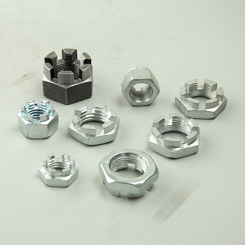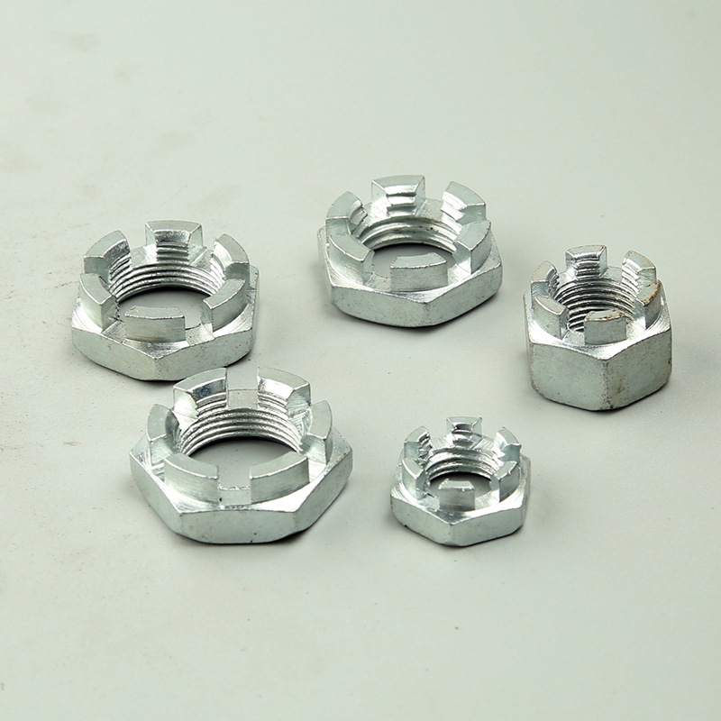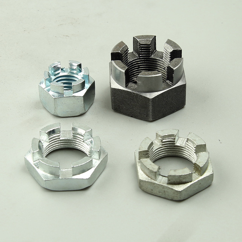 Denne doble sikrede kronemutteren med spor er en avgjørende komponent i styringssystemet, fjæringssystemet og akselstrukturen til biler. Hovedfunksjonen er å fikse komponenter som styrestangen eller kuleleddet, og den kan også være godt låst av en åpen pinne.