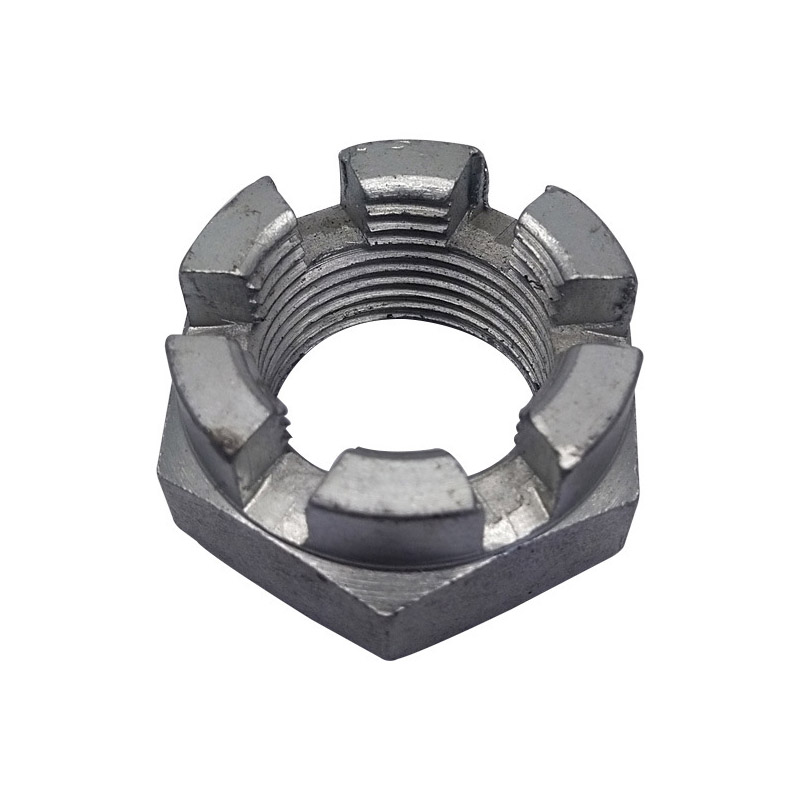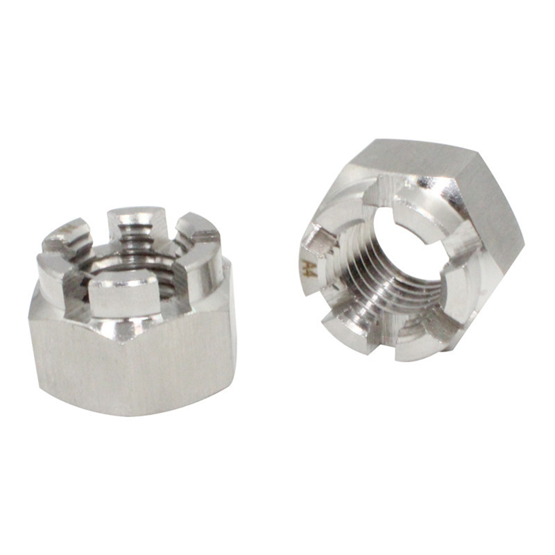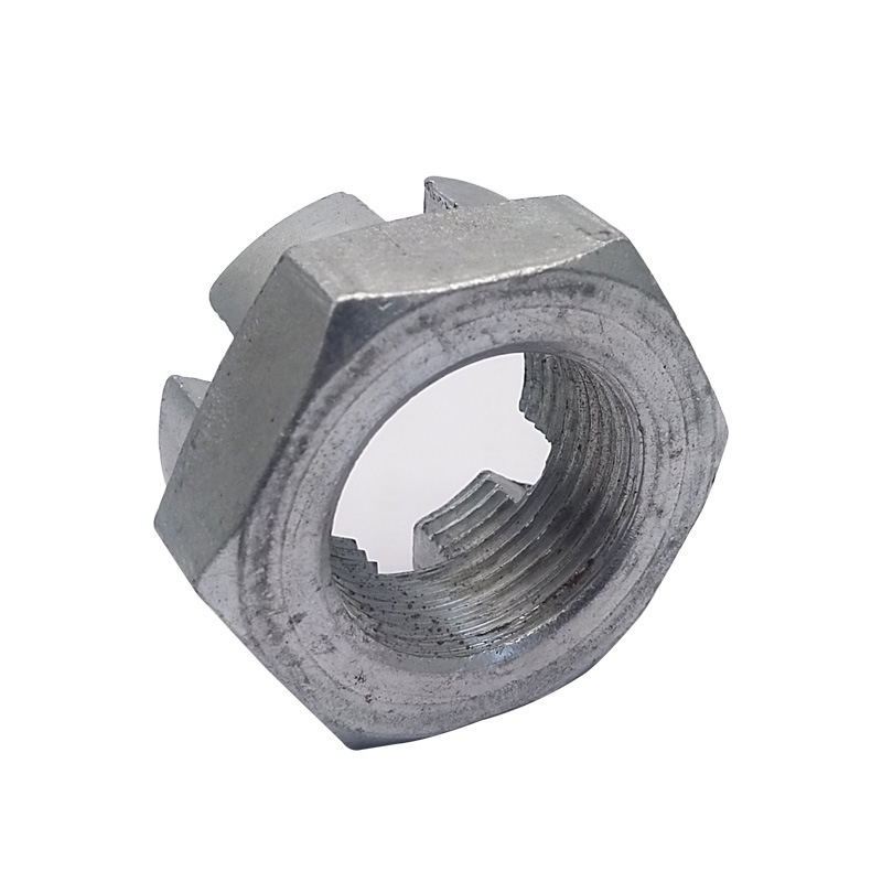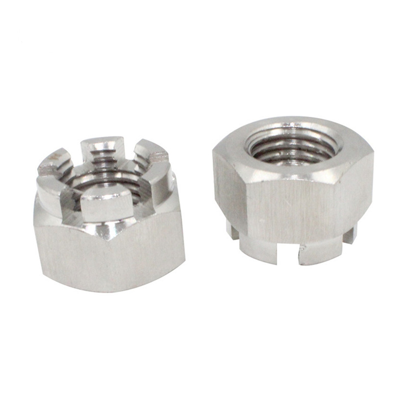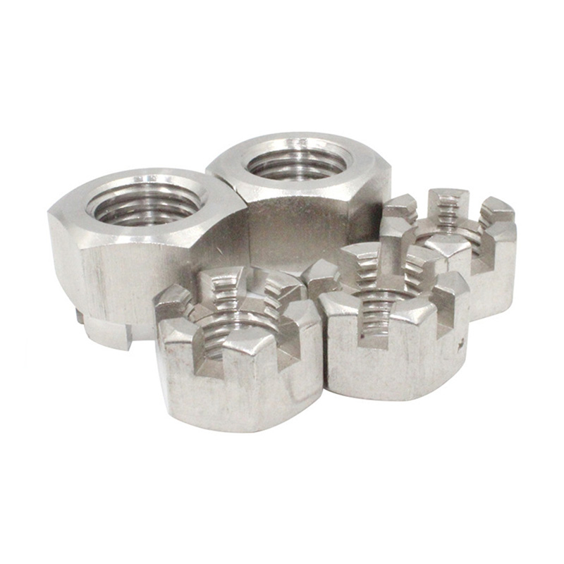Kuppelen har flere spor (vanligvis seks), som er jevnt fordelt og strekker seg rett langs mutterens akse. Disse sporene er nøyaktig maskinert og kan perfekt samsvare med standardpinnene. Utformingen av denne slissede runde hodet er både praktisk og sikkerhetsorientert: Når du strammer mutteren, kan den festes på plass, og dermed forhindre at den faller av fra bolten på grunn av vibrasjon eller andre krefter.