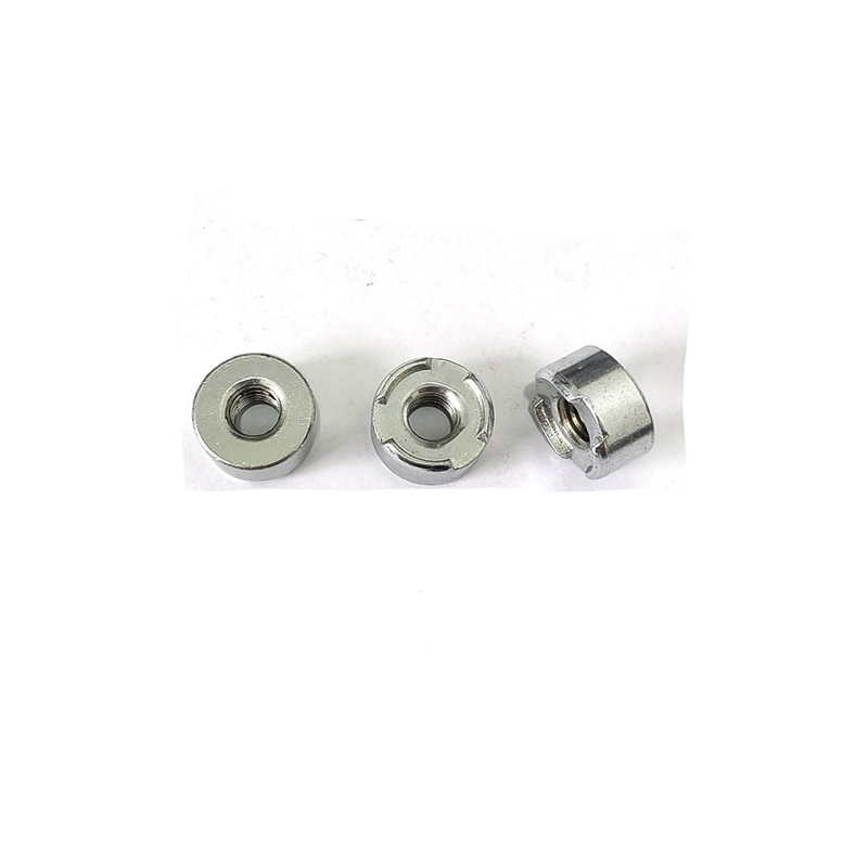Feilfri sveise runde nøtter har standardstørrelser og målinger for å sikre at de fungerer med andre deler og fungerer godt. Viktige målinger inkluderer trådstørrelsen-som M8 eller 1/4 "-20-diameteren til den lille pilotfanen, den totale bredden på mutteren og dens høyde.