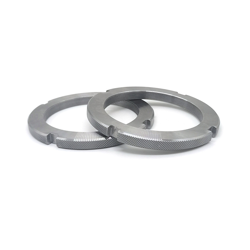 Helgjengede, slissede runde muttere - de er definert i henhold til standarder som DIN 546 og brukes hovedsakelig for å oppnå en sikker festeforbindelse og tåler vibrasjoner. Hovedtrekket til disse mutterne ligger i sporene som er skåret i den ene enden av mutteren. Slik bruker du dem: Først skru mutteren på en forhåndsboret bolt eller bolt og stram den til ønsket posisjon. Etter tiltrekking, innrett sporet med hullet på boltakselen. Til slutt setter du inn en åpen stift (låseskive) eller sikkerhetsline gjennom det justerte sporet og boltehullet, og bøy deretter endene av stiften for å sikre en sikker passform. Således, i nærvær av vibrasjoner, vil ikke mutteren løsne.