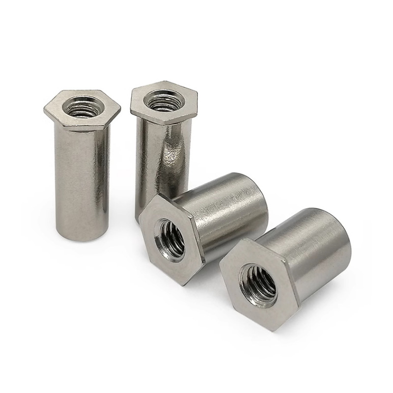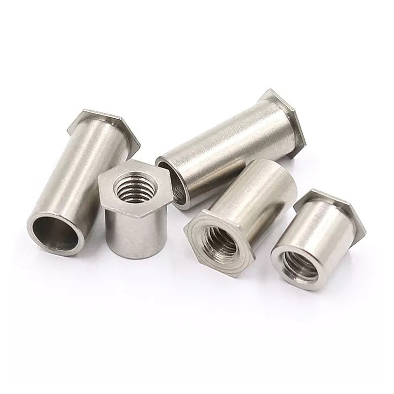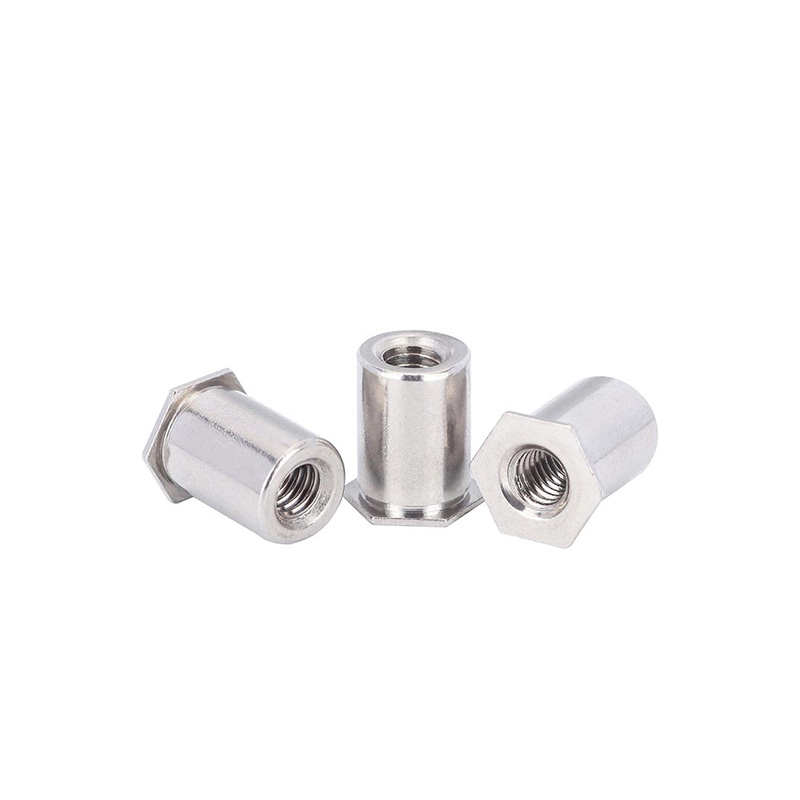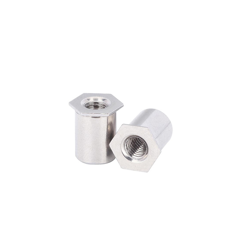 Den herdet rustfrie stål sekskantet nageltnøttesøyle er flott når det gjelder å håndtere høye statiske og dynamiske belastninger. Den sekskantede formen hjelper den virkelig til å bekjempe vri -krefter, så den ikke løsner når det er vibrasjon, super viktig for biler og maskiner. Når du installerer den, sprer den store bula som dannes på baksiden klemmekrefter over et bredere område, som kutter ned stress på materialet.