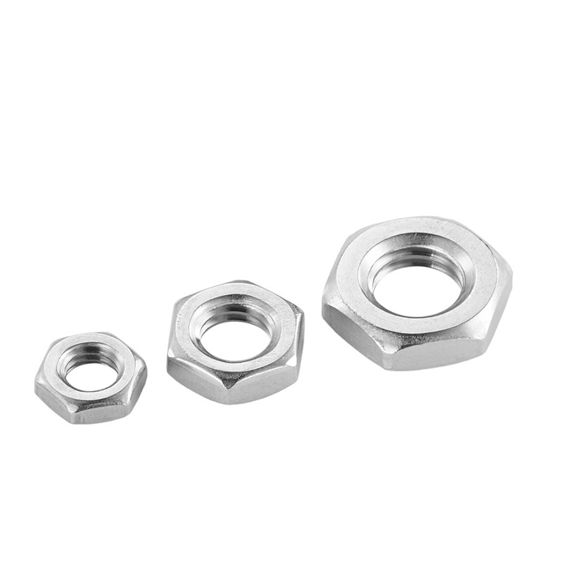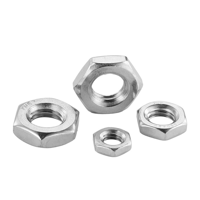 Shexagon ekstra flate nøtter med fin tonehøyde tråder en slags slank og lav mutter. "Ekstra flat" betyr at de er tynnere enn vanlige nøtter, og den fine stigningstråden (med flere tråder per tomme) kan gi presis justering og bedre antivibrasjons løsrivende ytelse.