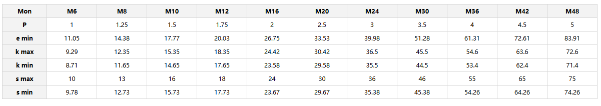 Høyden påsekskantnøtter med høyde 1,5der lik 1,5 ganger diameteren på bolten (for eksempel høyden på en M10 -mutter = 15mm). Den heksadesimale kanten er veldig skarp for verktøygrepet, og tråden kuttes nøyaktig i henhold til ISO -standarder.
