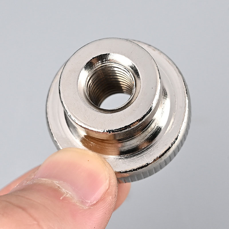 Størrelsen er liten, og matcher behovene for tynne metallplater. Overflaten har bare det grunnleggende belegget, som sinkbelegg eller passivering, ingen ekstra farger eller dekorasjoner. Formen på riflete muttere med høyt hode handler om praktisk bruk, noe som gjør det enkelt å installere og arbeide med for montering av metallplater.