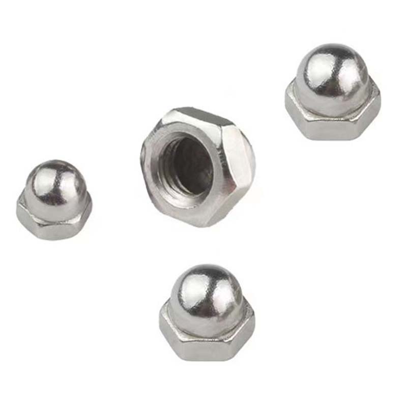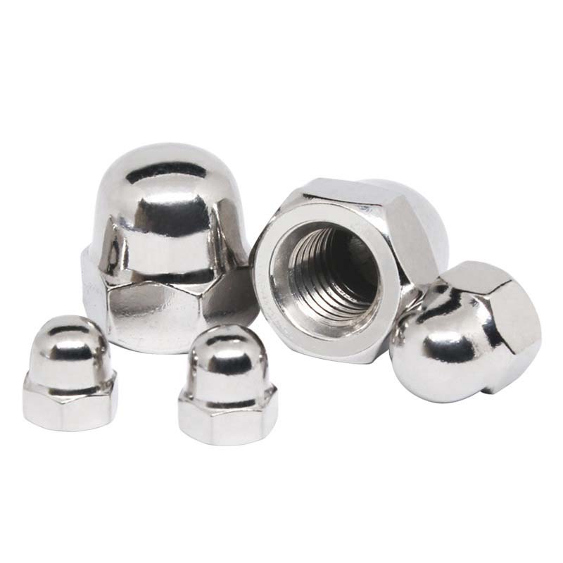 Høystyrke sekskantet kuppelhette muttere har en sekskanthylse inni (så du bruker en unbrakonøkkel) for å installere og stramme dem. Noen ganger er det en sekskantformet base på bunnen under kuppelen for dette også. Denne designen lar deg bruke høyt dreiemoment, noe som hjelper deg med å få den klemkraften du trenger, bra at de er sterke nok til det.