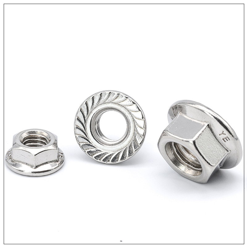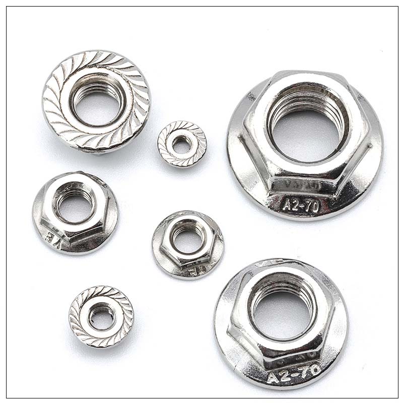Den metriske sekskantflensmutteren er en kombinasjon av en standard sekskantmutter og en innebygd flens (vaskemaskin). Den kan fordele trykket for å beskytte overflaten mens du forhindrer at mutteren løsner på grunn av vibrasjon. Det er tilgjengelig i stål og rustfritt stål for bruk i maskiner, kjøretøy eller konstruksjon. Flenser eliminerer behovet for separate pakninger, og sparer dermed installasjonstid og antall deler.