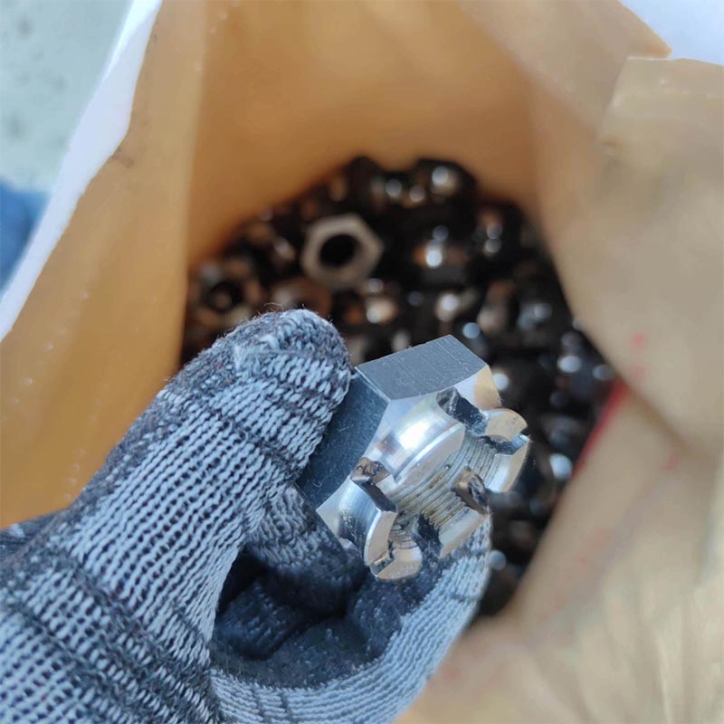 Under transport er muligheten for skade på den oppdragskritiske kronemutteren med spalte ekstremt lav. Disse nøttene er solide metallkomponenter, og emballasjen vår er spesielt designet for å beskytte dem. Vi gjennomfører til og med tester på emballasjen for å sikre at den tåler støtene under transport.