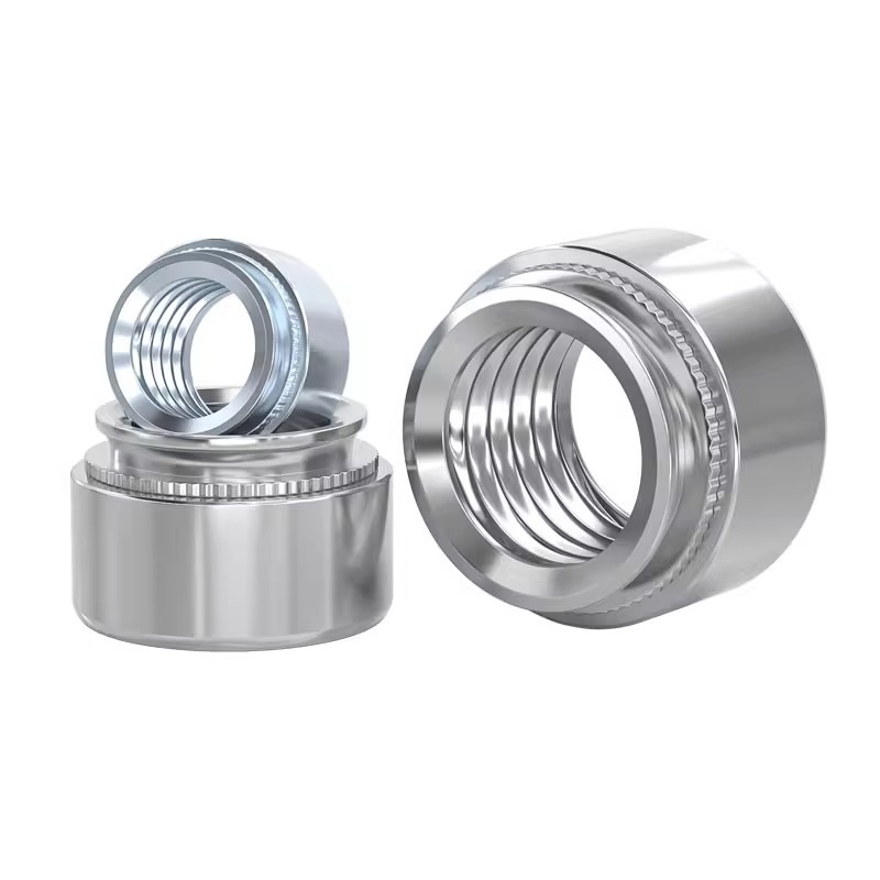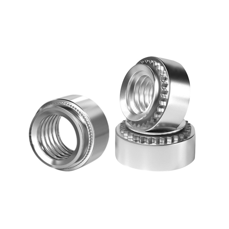 Det viktigste med en permanent klinisk mutter er at den kan danne en permanent, sterk forbindelse direkte i duktilt metallplater eller ikke-jernholdige plater uten å trenge forhåndsborede tråder. Når du installerer den, skyver en press den permanente klinkuleringen inn i materialet. Den spesifikke formen får metallet rundt den til å bevege seg og strømme inn i et ringformet innrykk (som en knurl eller spor) under hodet og/eller rundt skaftet.