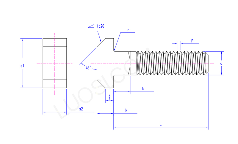 Firkantede hals -bolter er svært gjenkjennelige. Sett fra siden, den delen der hodet kobles til skruen, det vil si nakken, er en vanlig firkant, ryddig og firkantet. Dessuten er lengden på nakken vanligvis ikke for lang og er generelt omtrent samme tykkelse som komponenten den er koblet til. Skruedelen er en sylindrisk metallstang, og tykkelsen varierer i henhold til spesifikasjonene til bolten. Overflaten på skruen er gravert med tråder, som er lik form som de vanlige bolttrådene vi ser, i en spiralform, og brukes til å stramme mutteren.
