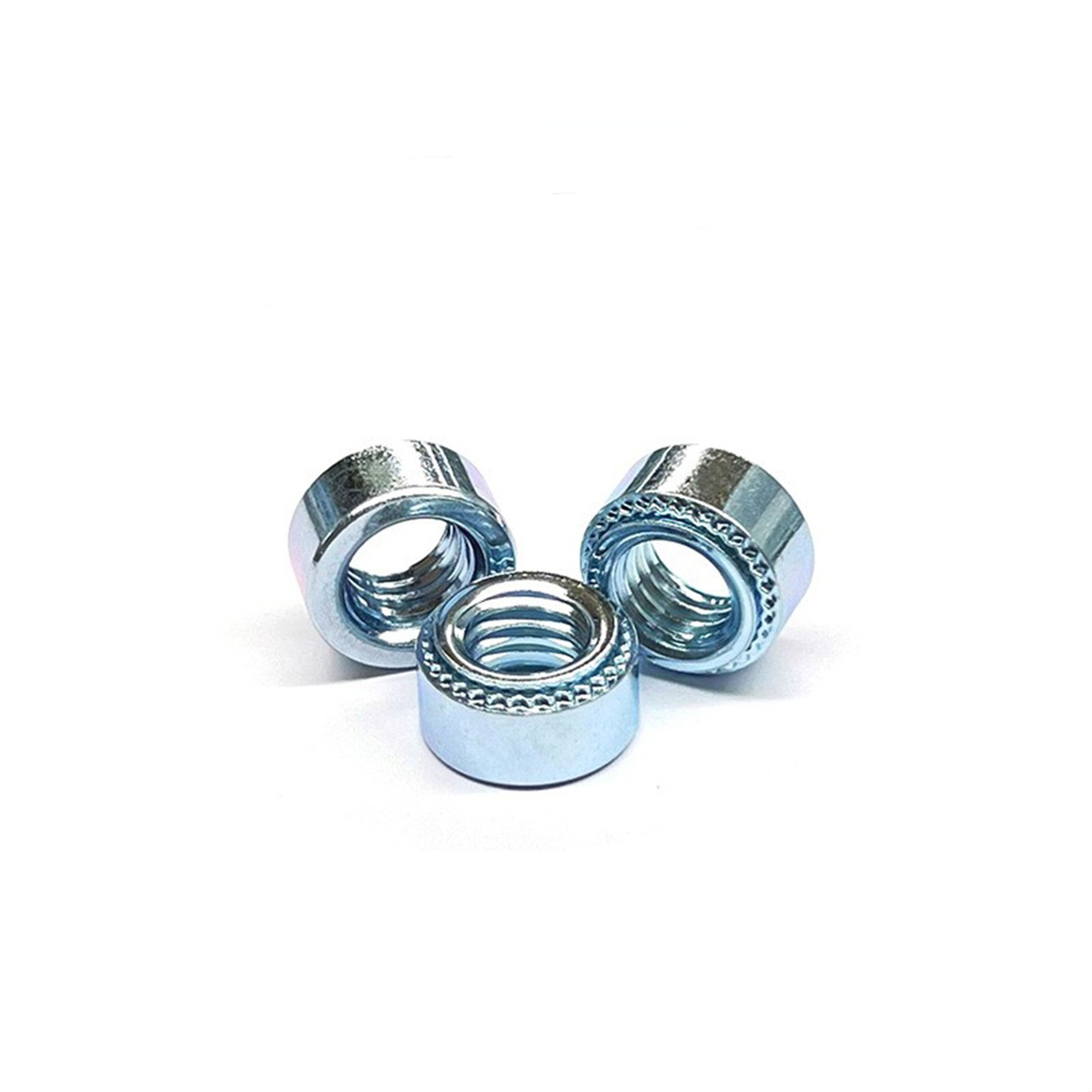 Denne mutteren har ofte overflatebehandlinger for å hjelpe dem med å motstå rust og se bedre ut. Vanlige inkluderer sinkplating-klart, gul eller svart-sink-nikkelplatting, Geomet® (en ikke-elektrolytisk uorganisk belegg) og passivering for rustfritt stål. Belegget må holde opp mot det høye trykket i kliningsprosessen uten å flette av.