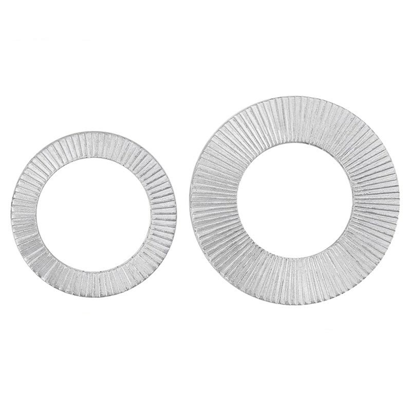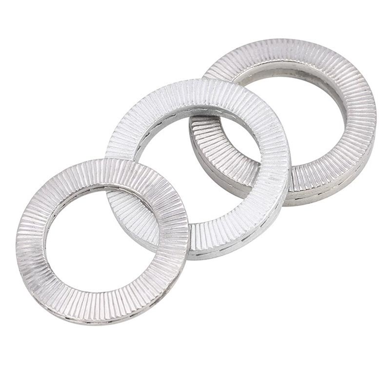 A: Disse dobbeltlaget selvlåsende skiver er vanligvis laget av ting som rustfritt stål (tenk SS304 eller SS316), karbonstål med sink/dacromet belegg, eller tunge legeringer som Inconel. Versjoner i rustfritt stål ruster ikke lett, så de er solide for fuktige eller salte steder. Karbonstål er billigere, men får et rustkamp-løft fra beleggene.