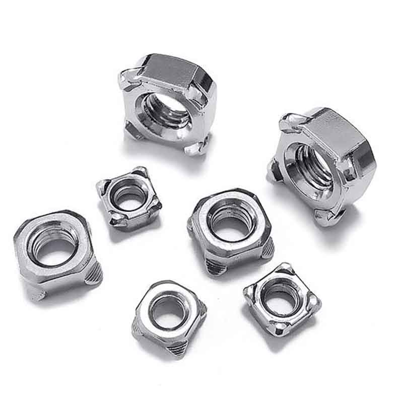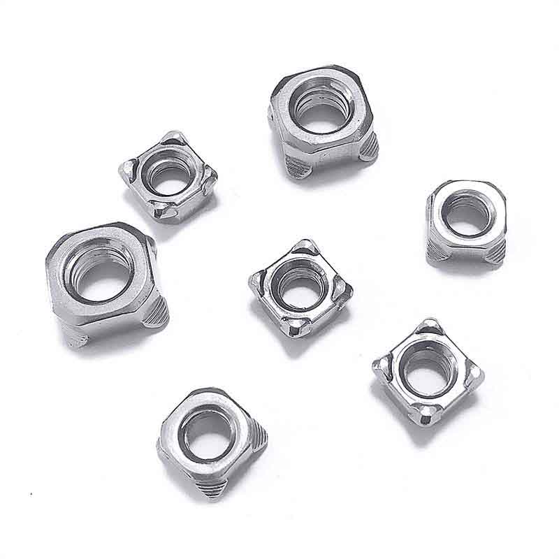 Type B firkantsveisede mutterehar ingen hull eller enkle hjørner; i stedet er det distinkte fremspring på hvert hjørne. Dette er en nøkkelfunksjon. Du kan sveise direkte på disse fremspringene. Denne utformingen gir vanligvis en mer jevn sveisekjerne fordi fremspringene vil smelte og smelte sammen med den underliggende metallplaten. Dette er en vanlig spesifikasjon, spesielt i bilindustrien.